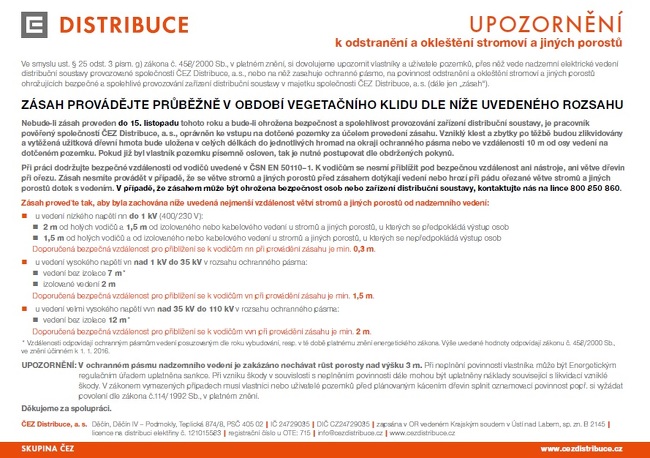 Žádost o spolupráci při ořezu zeleně