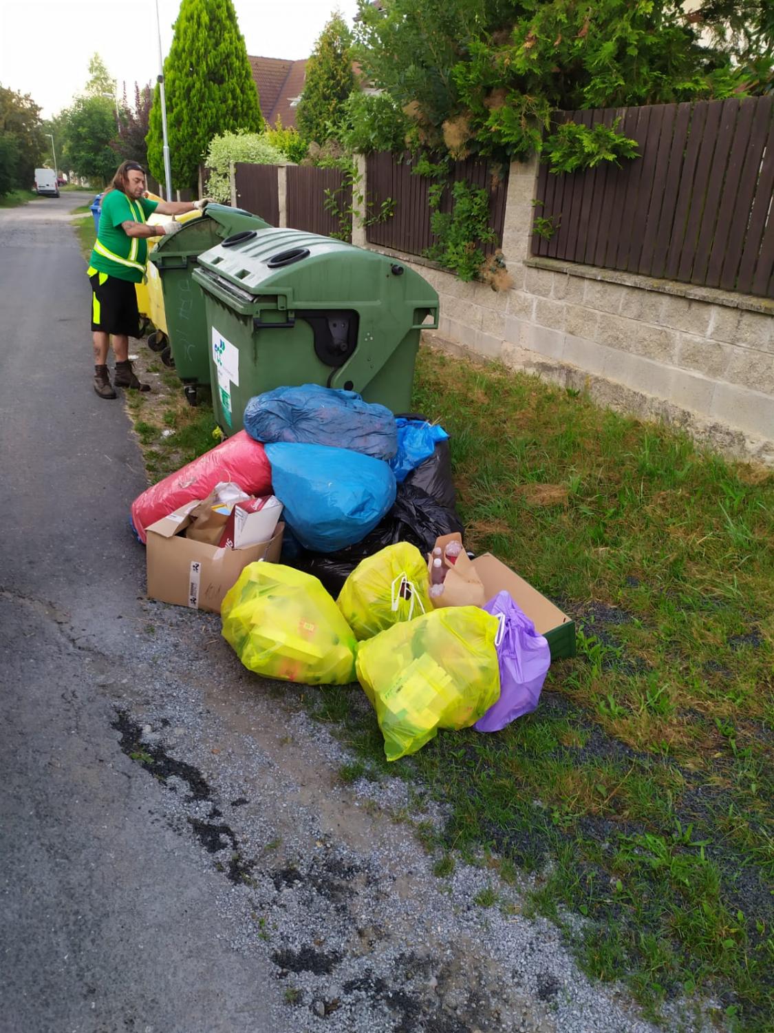 - Techničtí pracovníci obce 3x v týdnu objíždějí tato stanoviště, provádí zde úklid, dotřiďování odpadu, a hlavně minimalizaci jeho objemu. Je s podivem, co vše kolem kontejnerů nacházejí. Ostatně přesvědčte se sami na přiložených fotografiích. A to jsem záměrně nevybrala ty nejhorší.