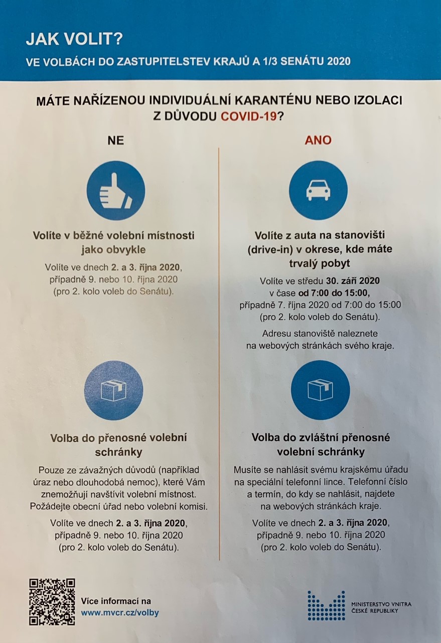 Volby do Zastupitelstev krajů 2020 - Karanténa info